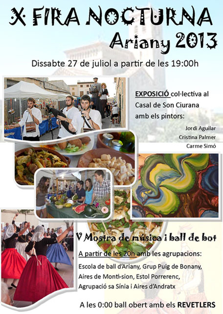 Per desè any torna sa fira nocturna d’Ariany, a part de múltiples paradetes de gastronomia i artesans trobareu al casal de Son Ciurana l’exposició col·lectiva de Jordi Aguilar, Cristina Palmer i Carme Simó.