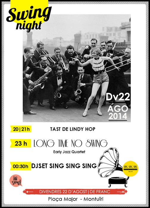 En motiu de les festes de Sant Bartomeu de Montuïri 2014 hem organitzat una bona festa plena de swing per tothom que vulgui fruir, escoltar i ballar amb aquesta música!