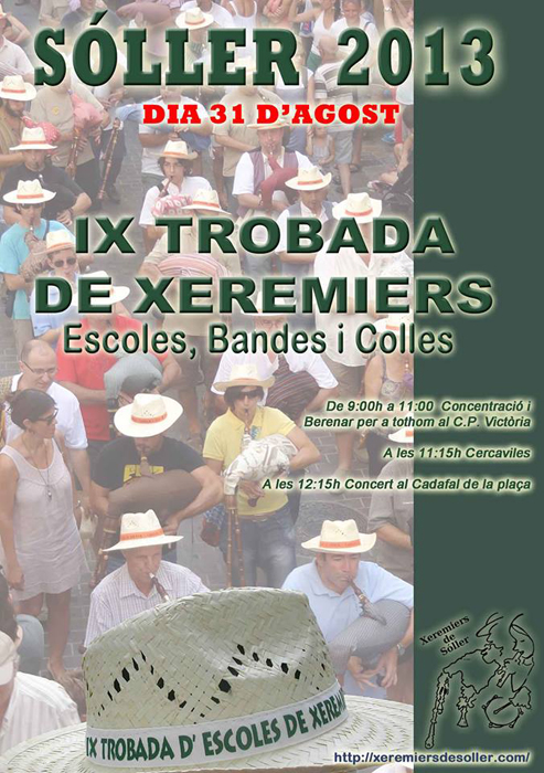 11 a 13.30 h a la plaça constitució de Sóller Trobada de Xeremiers a Sóller.